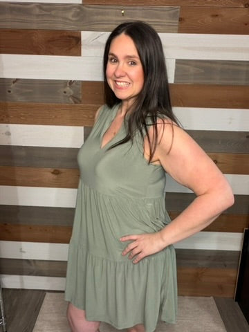 The Lizzy Tiered Tank Dress is a breezy and effortless piece perfect for any occasion. Made from soft and lightweight Bulgari fabric, this dress drapes beautifully for a comfortable yet flattering fit. The sleeveless design and v-neckline add a touch of elegance, while the tiered silhouette creates movement and flow. Whether dressed up with accessories or kept casual with sandals, this dress is a go-to for easy, everyday wear.