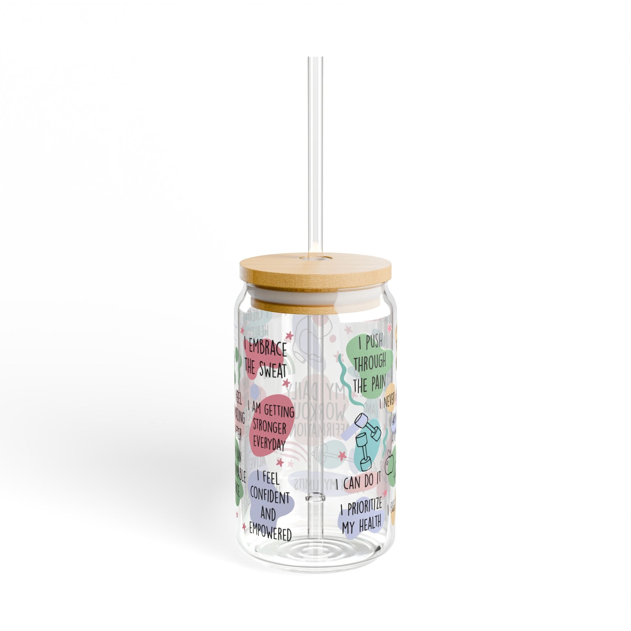 Start your day with a dose of motivation in this 16oz sipper glass designed to keep you hydrated and inspired. Perfect for the gym, yoga studio, or morning run, this glass features uplifting workout affirmations that remind you to push harder, believe in yourself, and celebrate every rep. The durable, easy-to-grip design fits most cup holders, while the clear glass lets you see exactly how much water you've conquered. Stay hydrated, stay motivated, crush your goals.
