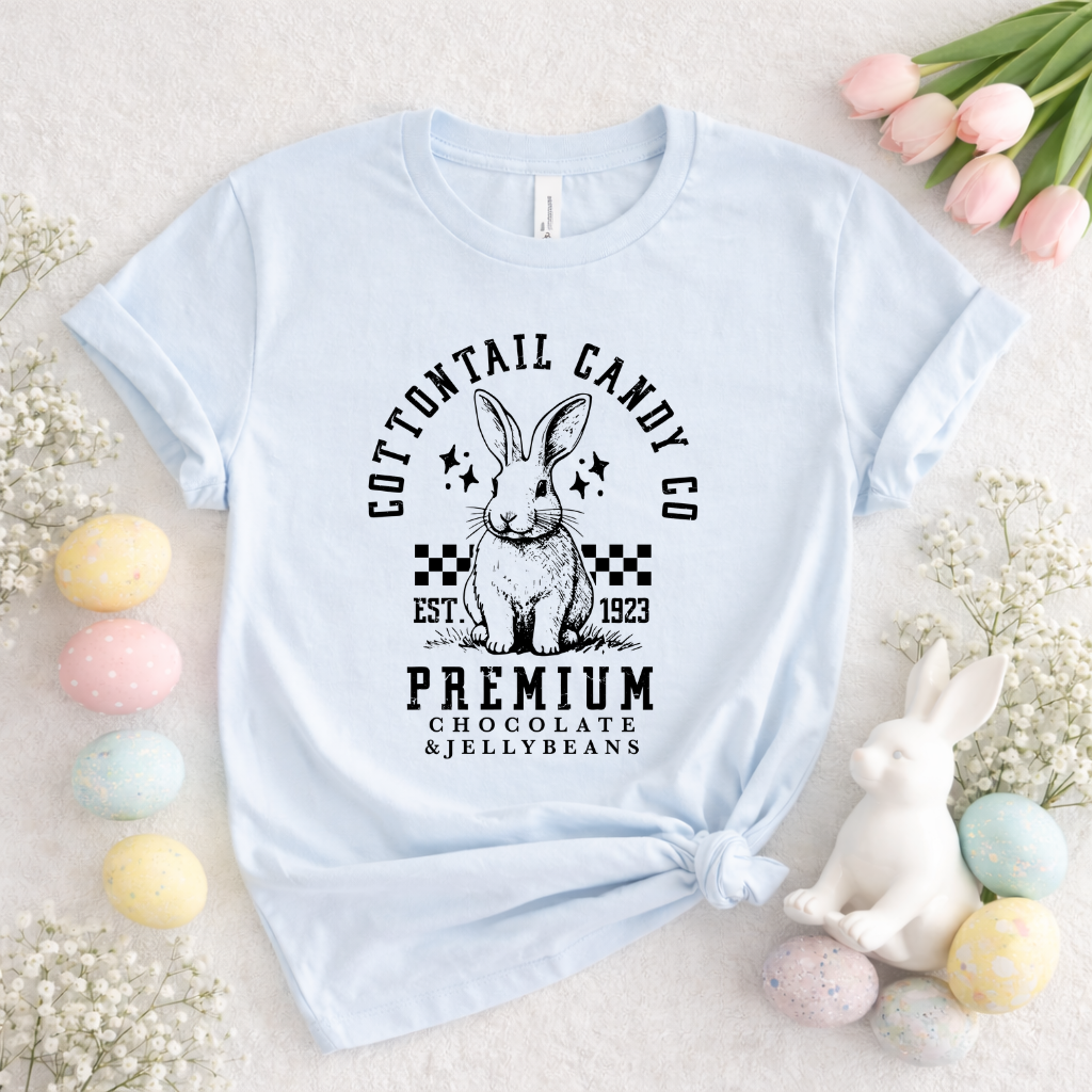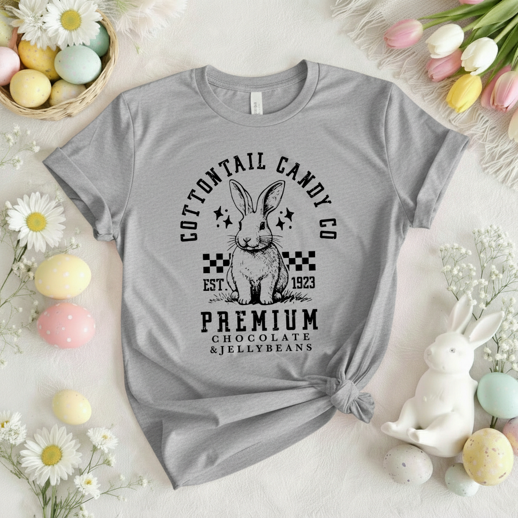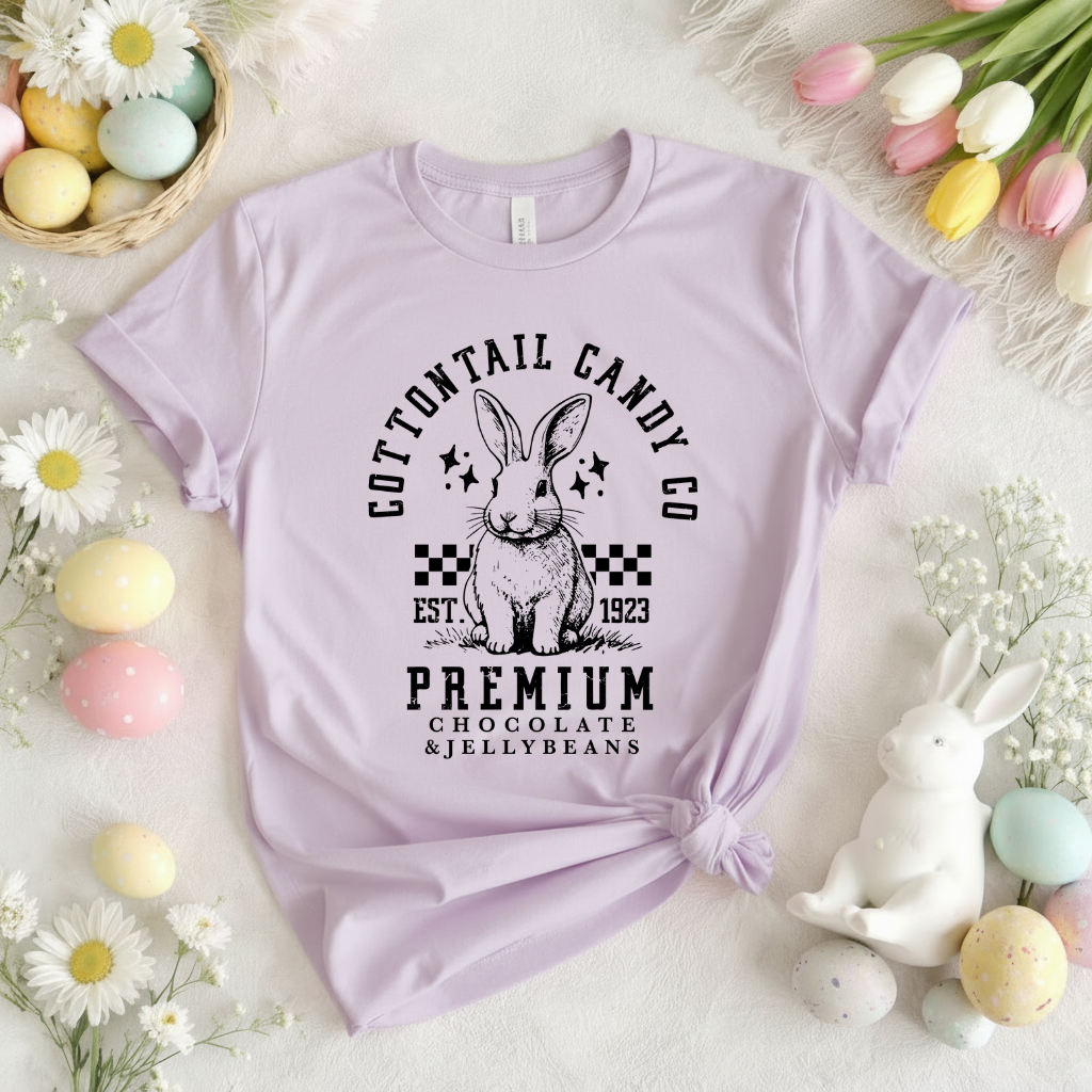 Hop into style with our Cottontail Candy t-shirt! Made with soft cotton, this playful tee is perfect for any bunny lover. With a fun print and comfortable fit, you'll be the coolest rabbit in town. Hop to it and grab yours today!
