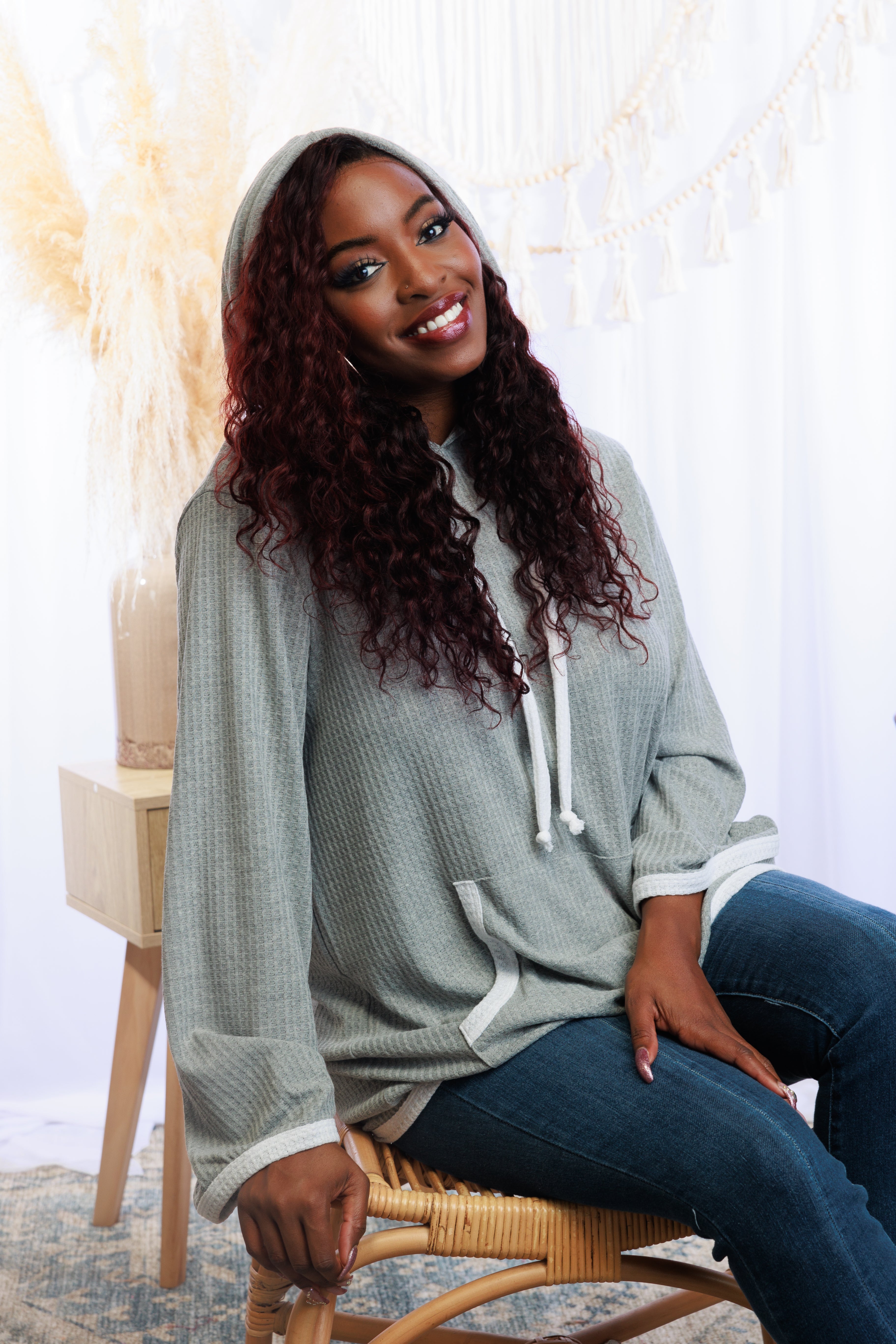 Be ready to dash anywhere in this stylish On the Run Hoodie! Made of cozy waffle knit, it features long bell sleeves, a kangaroo pocket, and a drawstring hood so you can pull up the hood and get going in a flash! Looking good has never been easier!