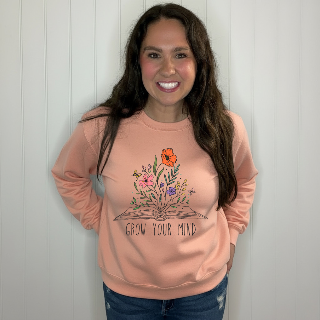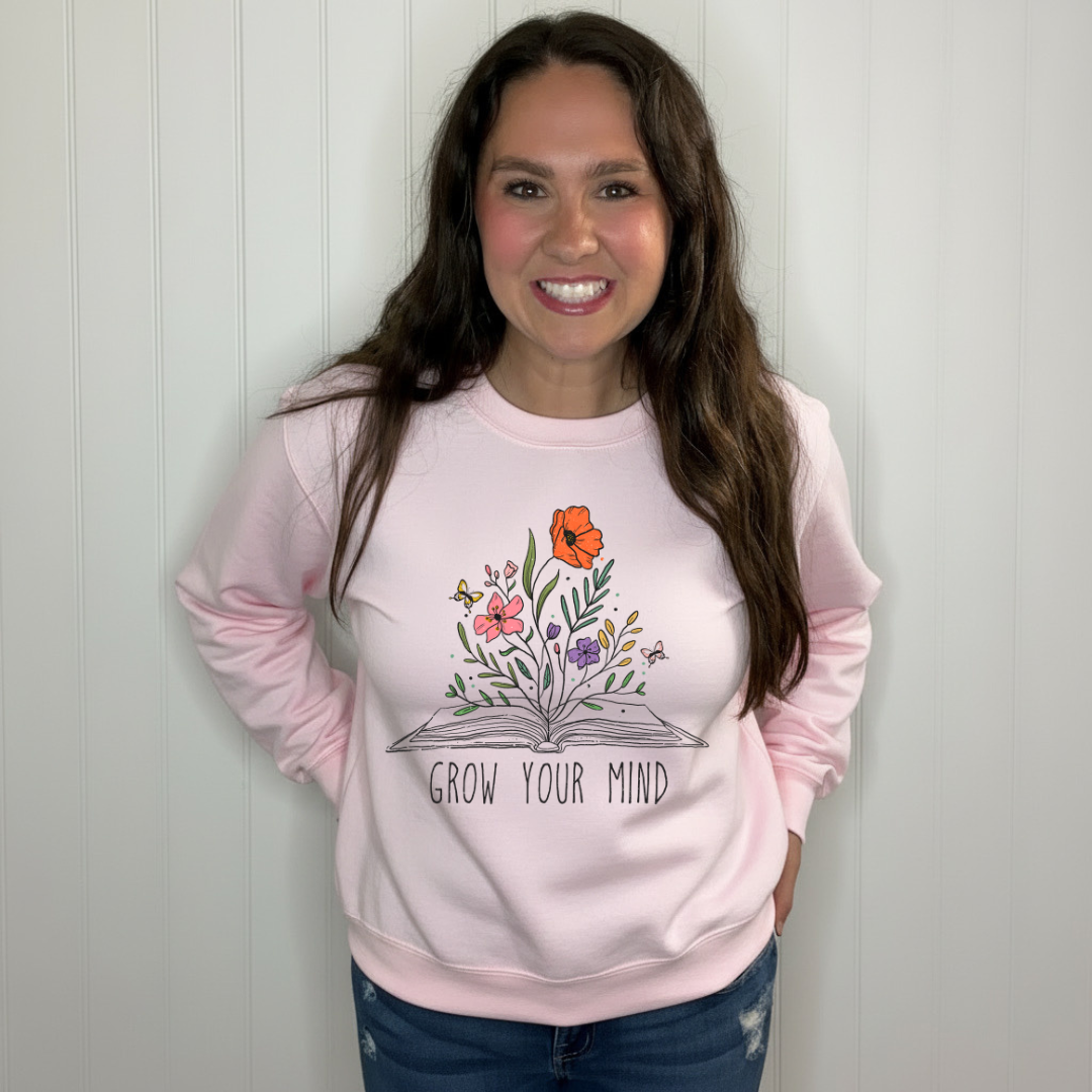 Upgrade your wardrobe and mindset with our Grow Your Mind Sweatshirt. This cozy sweatshirt is a perfect reminder to keep expanding your thoughts and perspective. No matter the weather, stay on-trend and inspired with this must-have piece. (Growth mindset not included)
