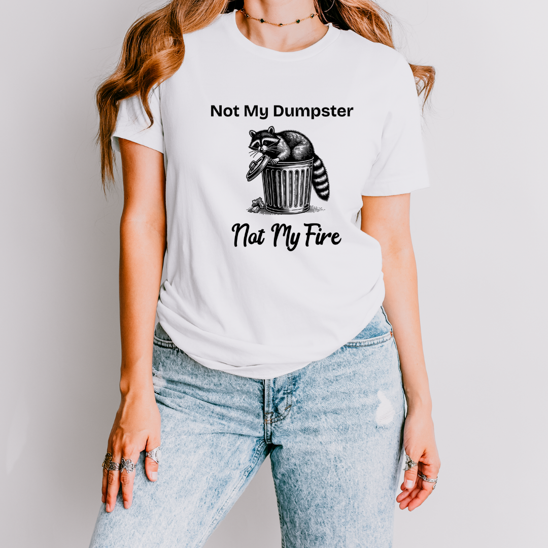 Show off your playful side with the Not My Dumpster Not My Fire Tee, featuring an adorable raccoon graphic. This comfortable tee makes a bold statement while keeping your look casual and fun. Perfect for those who love quirky style with a touch of humor.