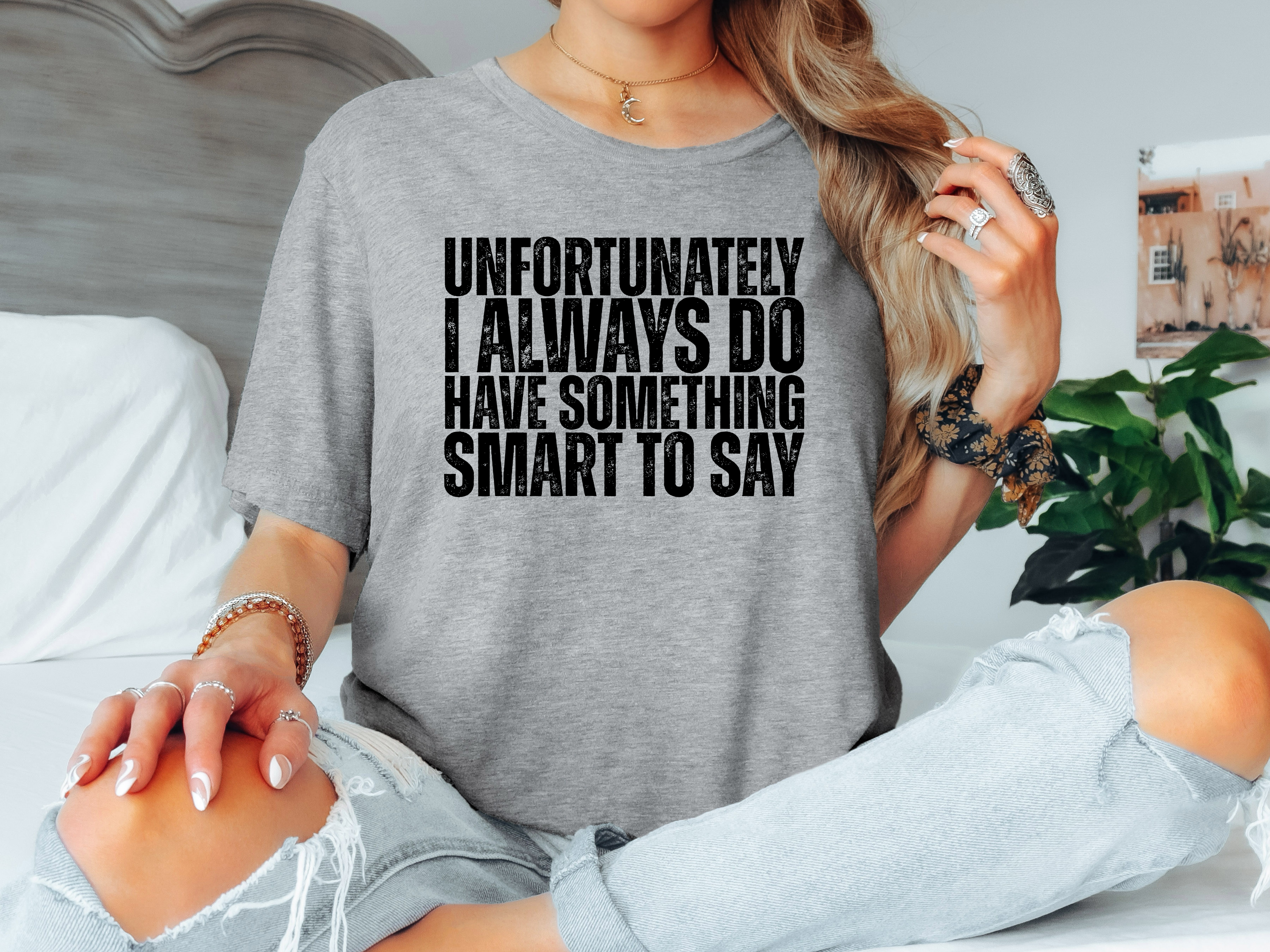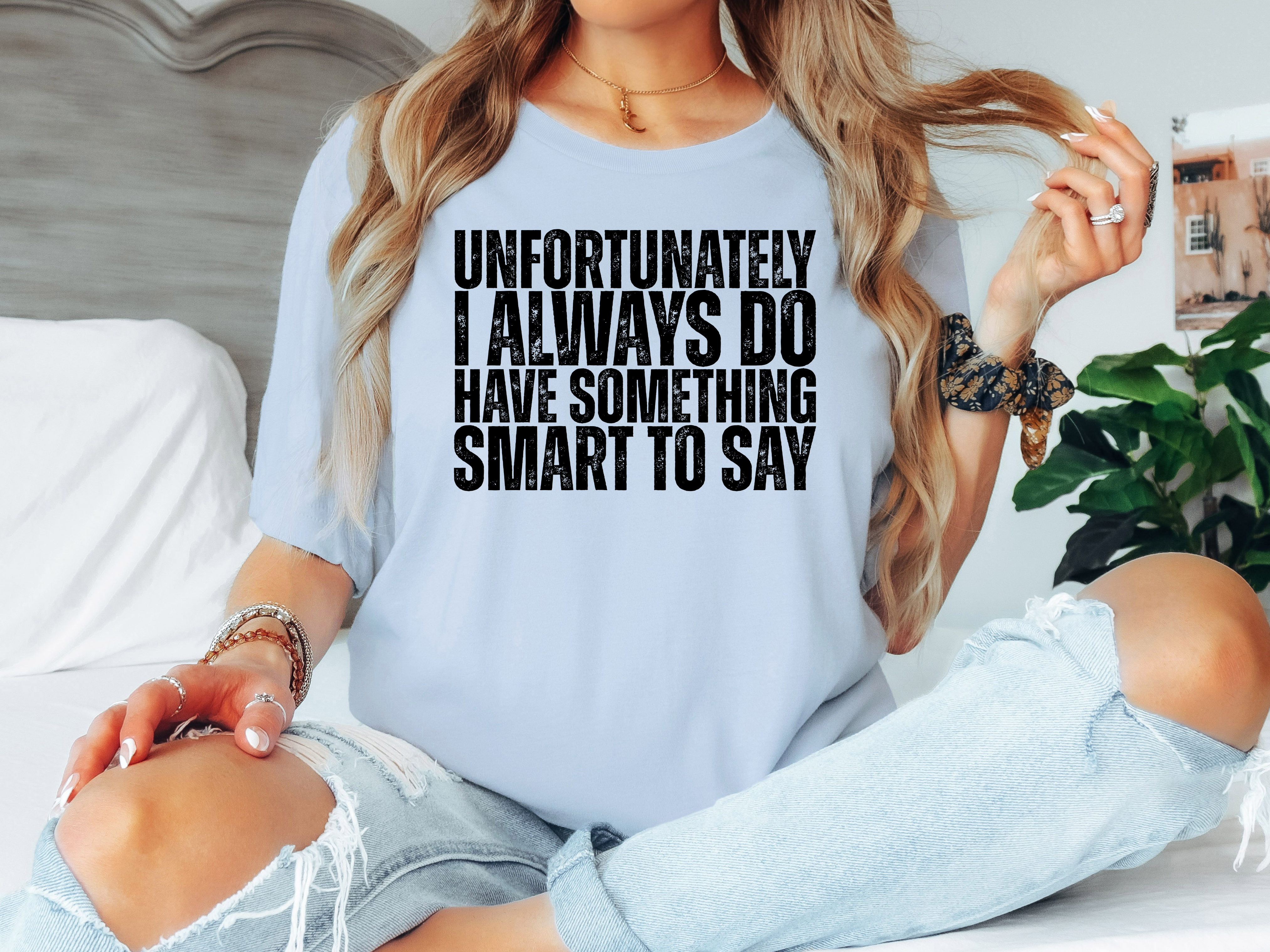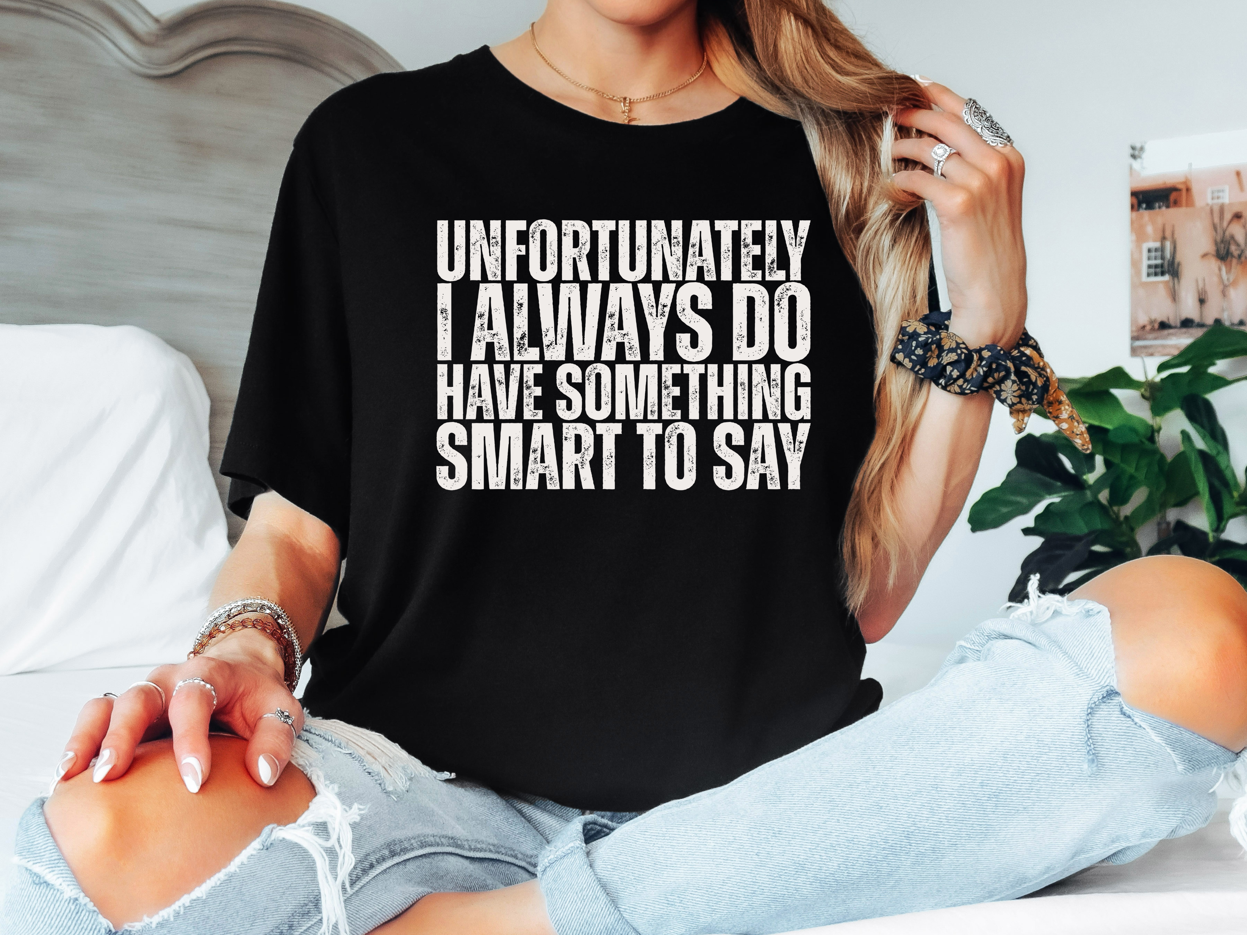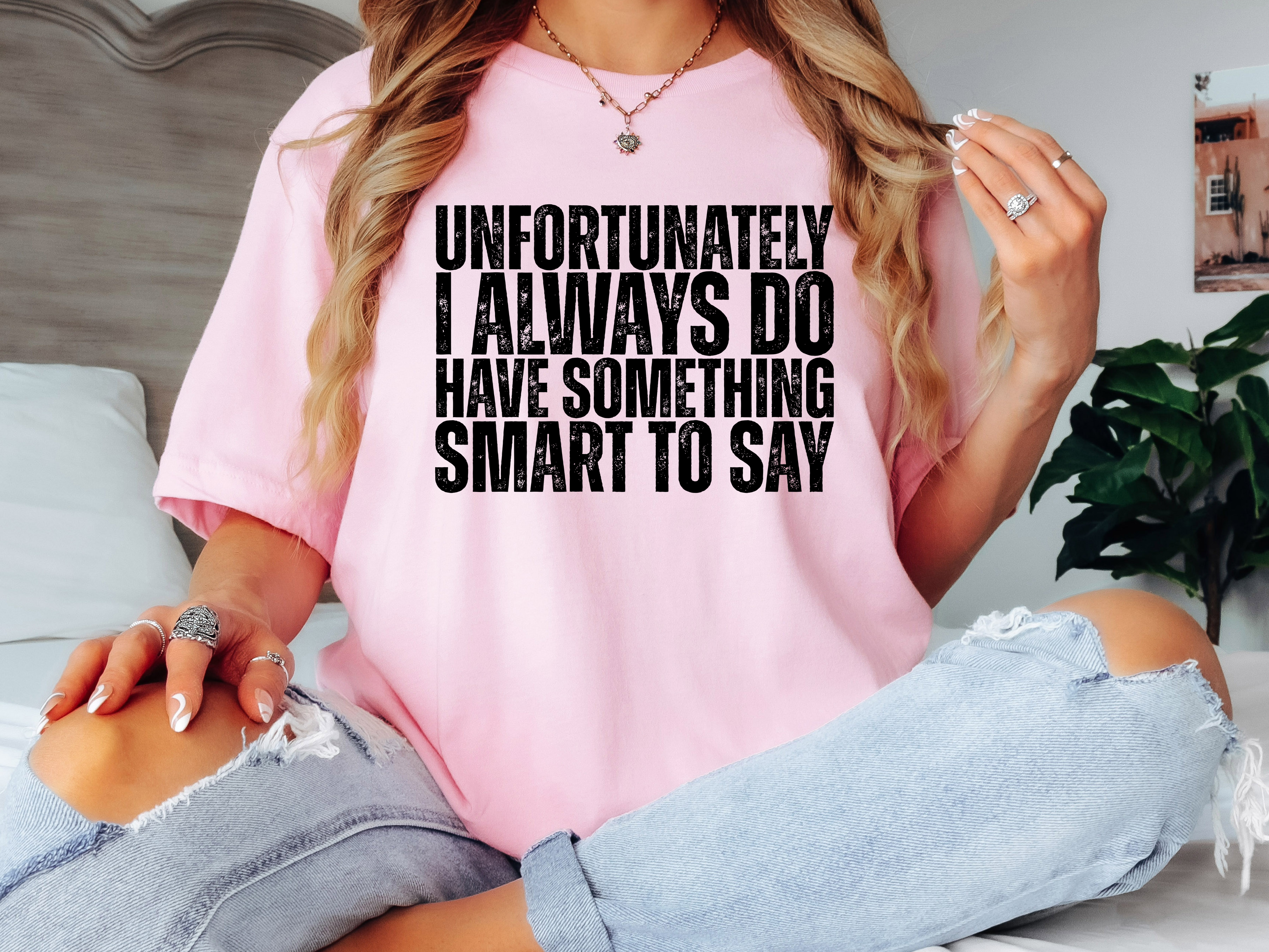 Unfortunately I always do have something smart to say—and this tee celebrates that perfectly. Whether you're the witty one in the group chat, the quick-comeback queen, or just someone who can't resist a clever quip, wear your personality with pride. Soft, comfortable, and unapologetically you. Because sometimes the best accessory is a sharp sense of humor.
