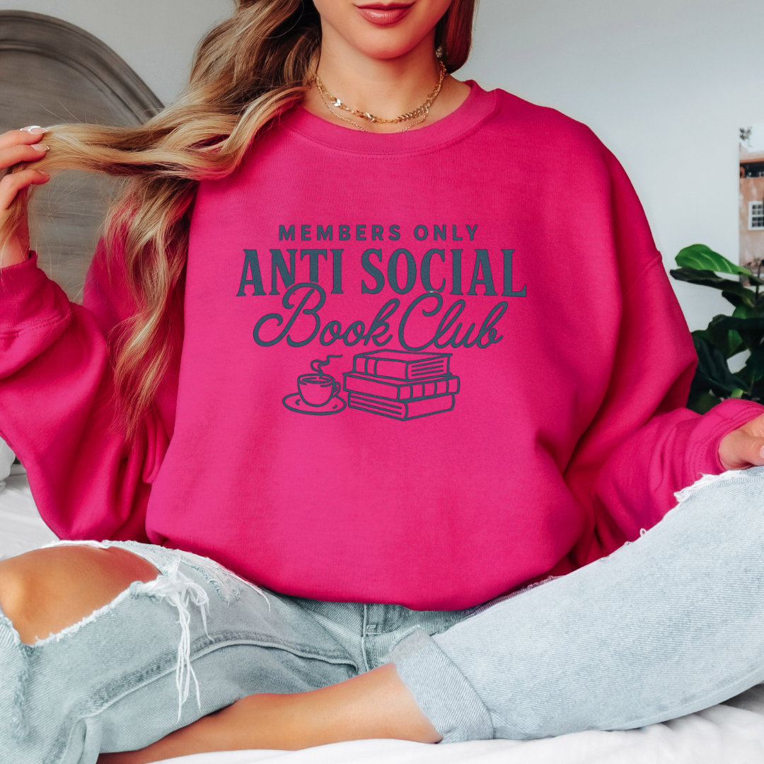 Join the coolest (and quietest) crew with the Members Only AntiSocial Book Club Sweatshirt. This cozy and playful sweatshirt is perfect for those who prefer books over small talk. Snuggle up in style while showing off your love for reading and your anti-social charm.