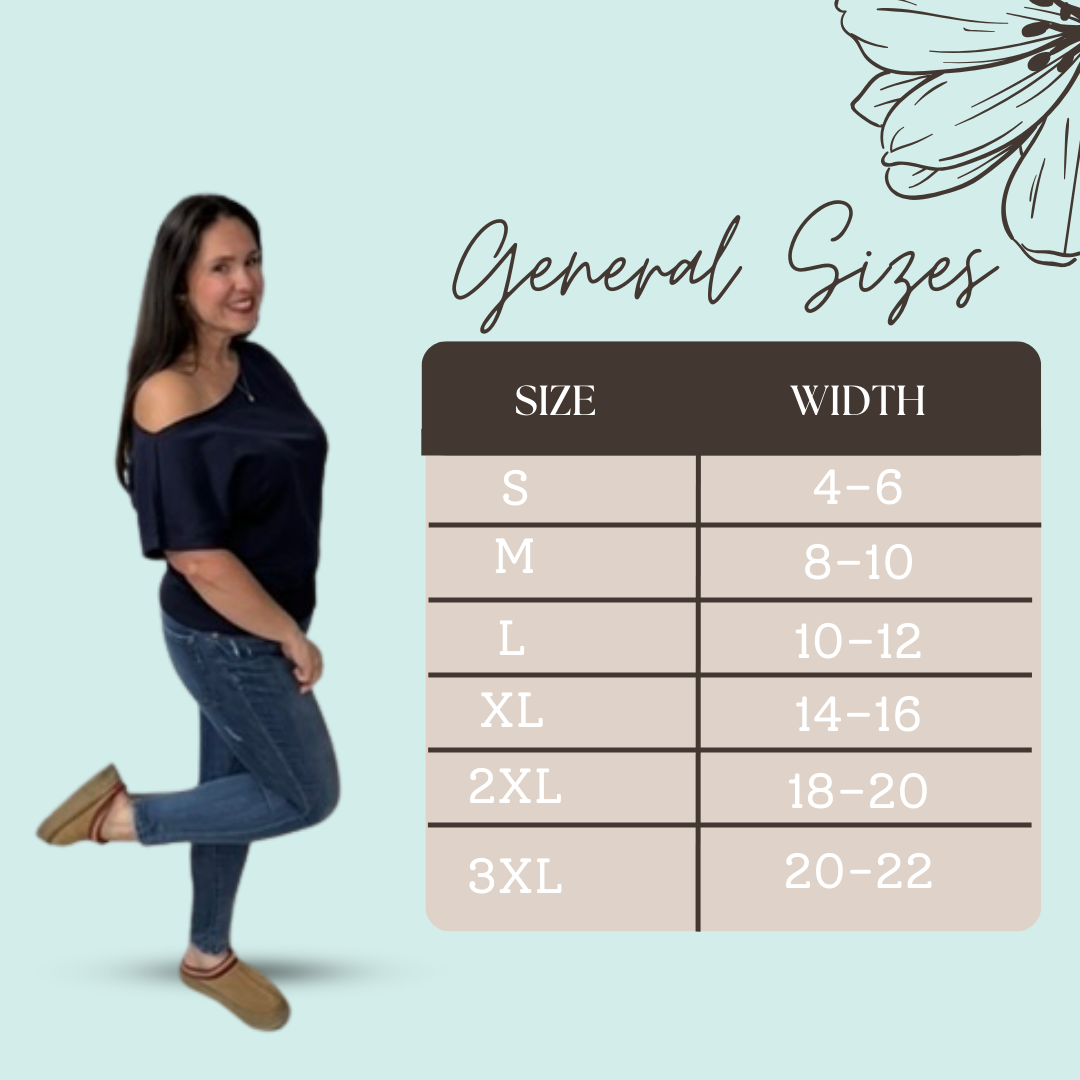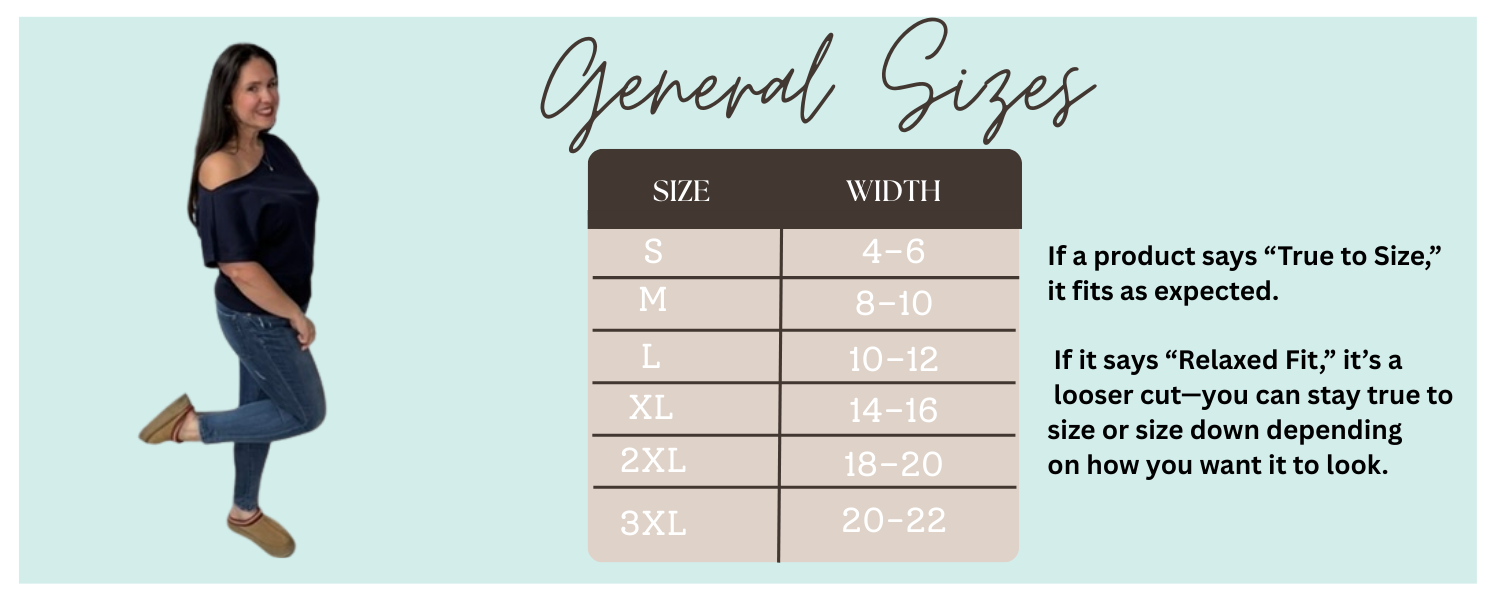 Because we carry multiple brands, the size chart below is meant as a general guide. For the most accurate info, always check the product description where I share exact measurements, sizing notes, and model specs.