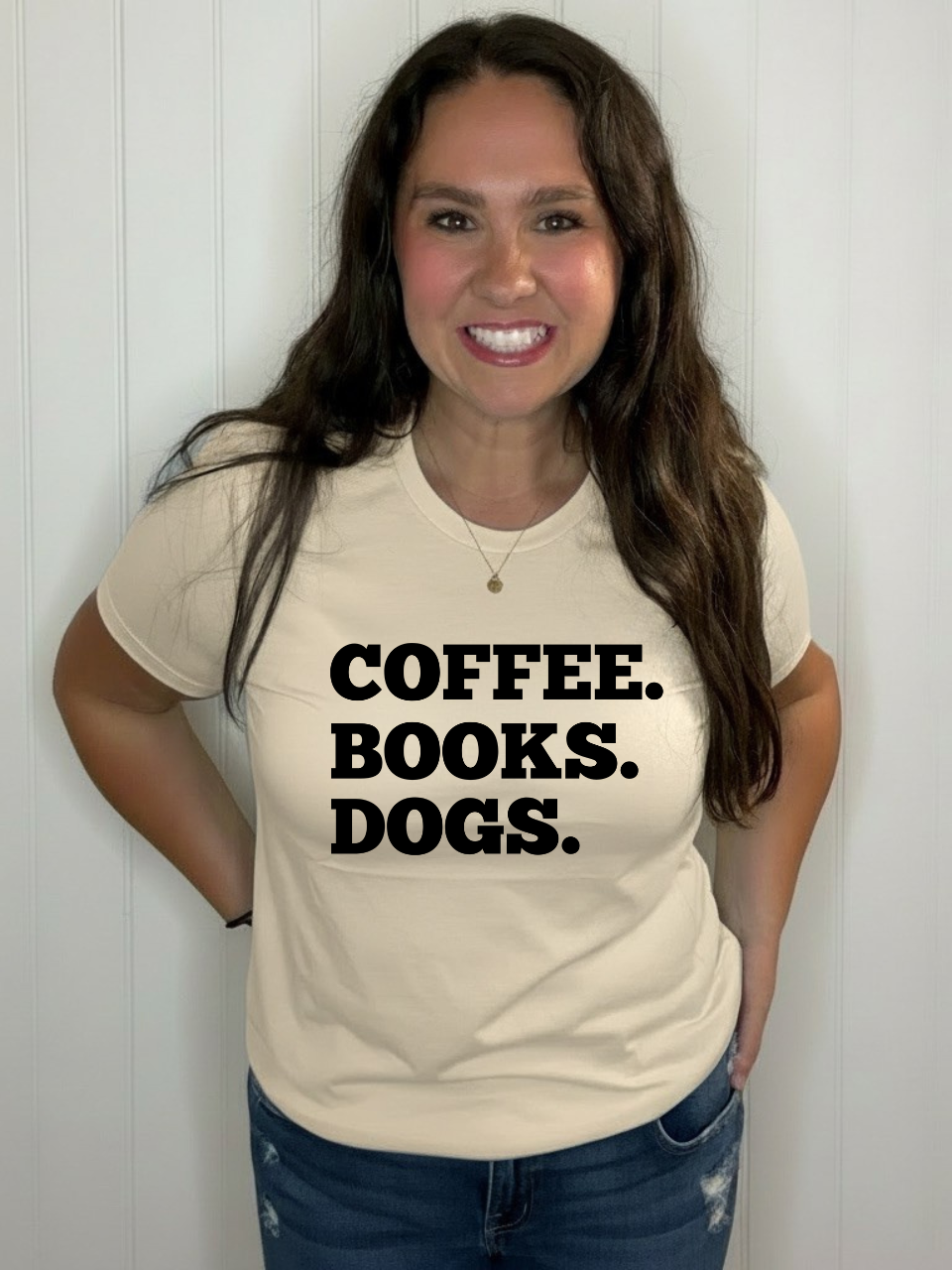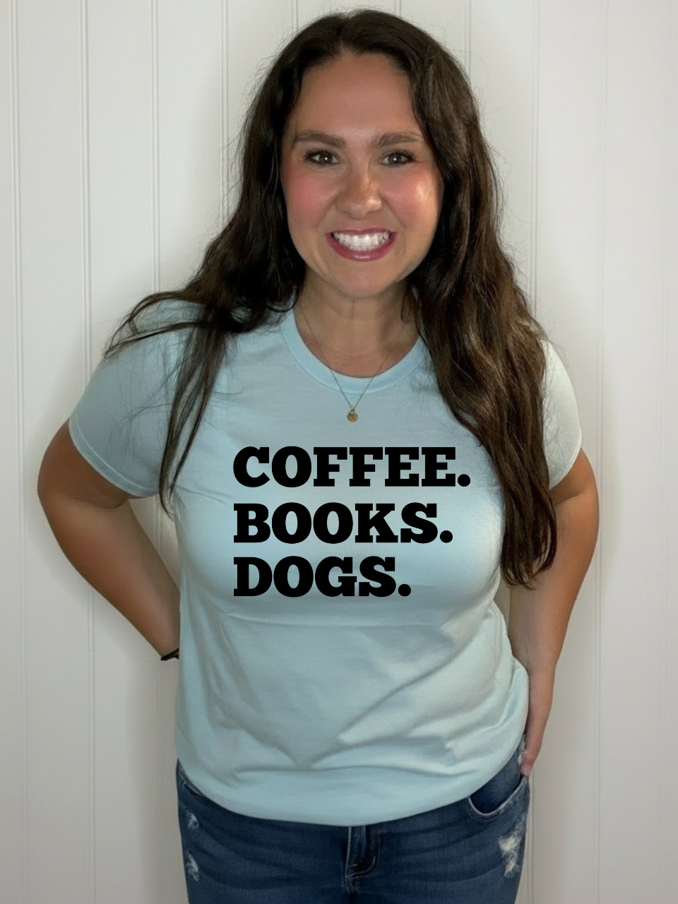 Celebrate your favorite trio with this playful tee that proudly declares your love for coffee, books, and dogs. Perfect for cozy mornings or casual outings, it’s a fun way to share what makes you happy every day. Soft and comfortable, this shirt is sure to become your go-to for relaxed style and good vibes.