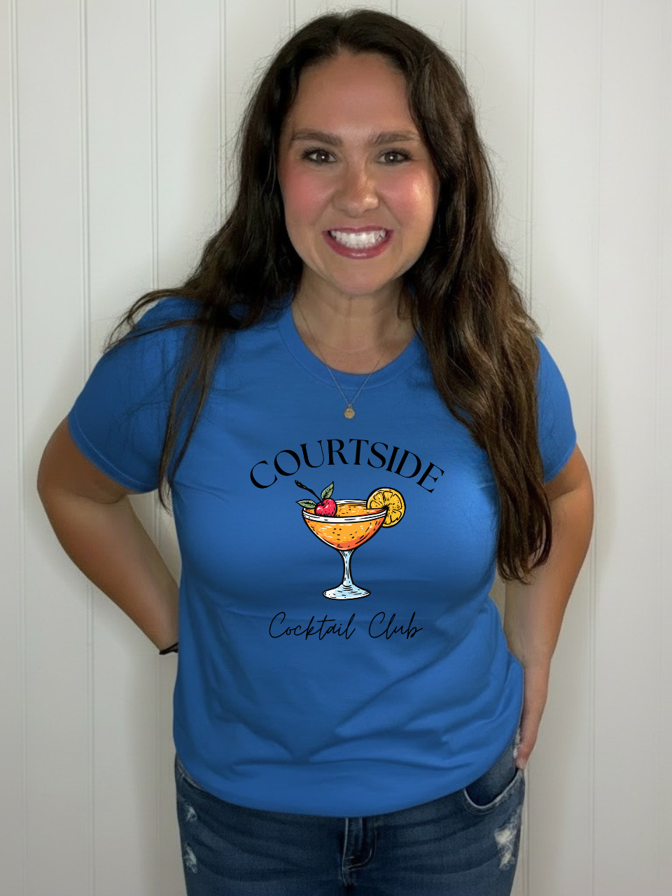 COURTSIDE Cocktail Club Tee Serve up style in this playful graphic tee that celebrates the intersection of court culture and cocktail hour. Featuring a bold, retro-inspired design, this tee is perfect for game day hangs, casual nights out, or anyone who appreciates a little wit with their wardrobe. Soft, comfortable fabric keeps you feeling great whether you're cheering from the stands or mixing drinks at home. A conversation starter that works as hard as your social calendar.
