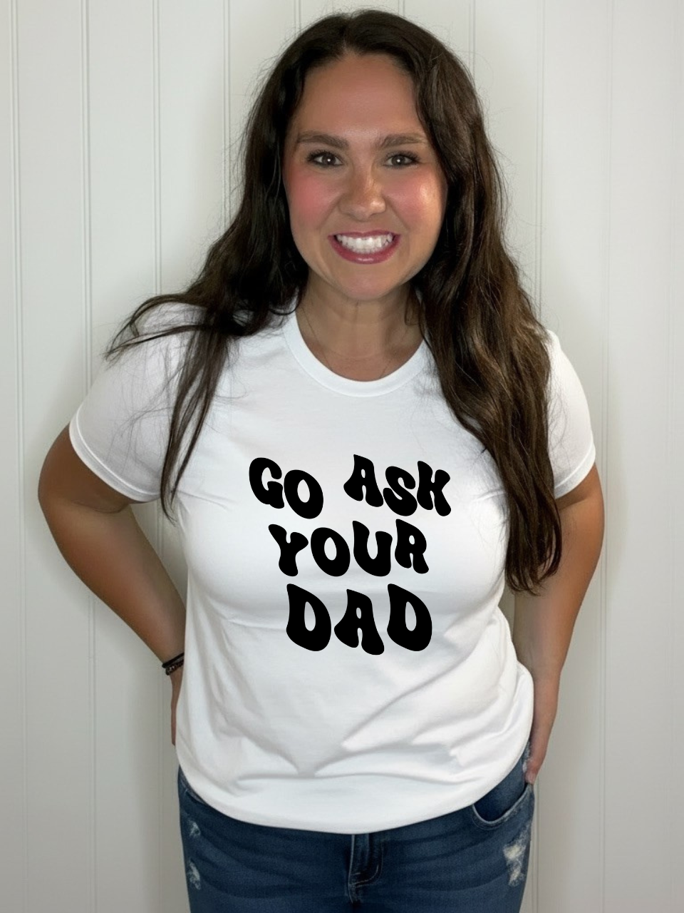 Keep the family fun alive with the Go Ask Your Dad Tee! This playful shirt is perfect for those moments when dad holds all the answers. Comfortable and cheeky, it’s a great way to add a little humor to your everyday wardrobe while sparking smiles wherever you go.