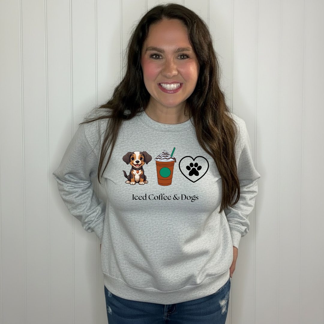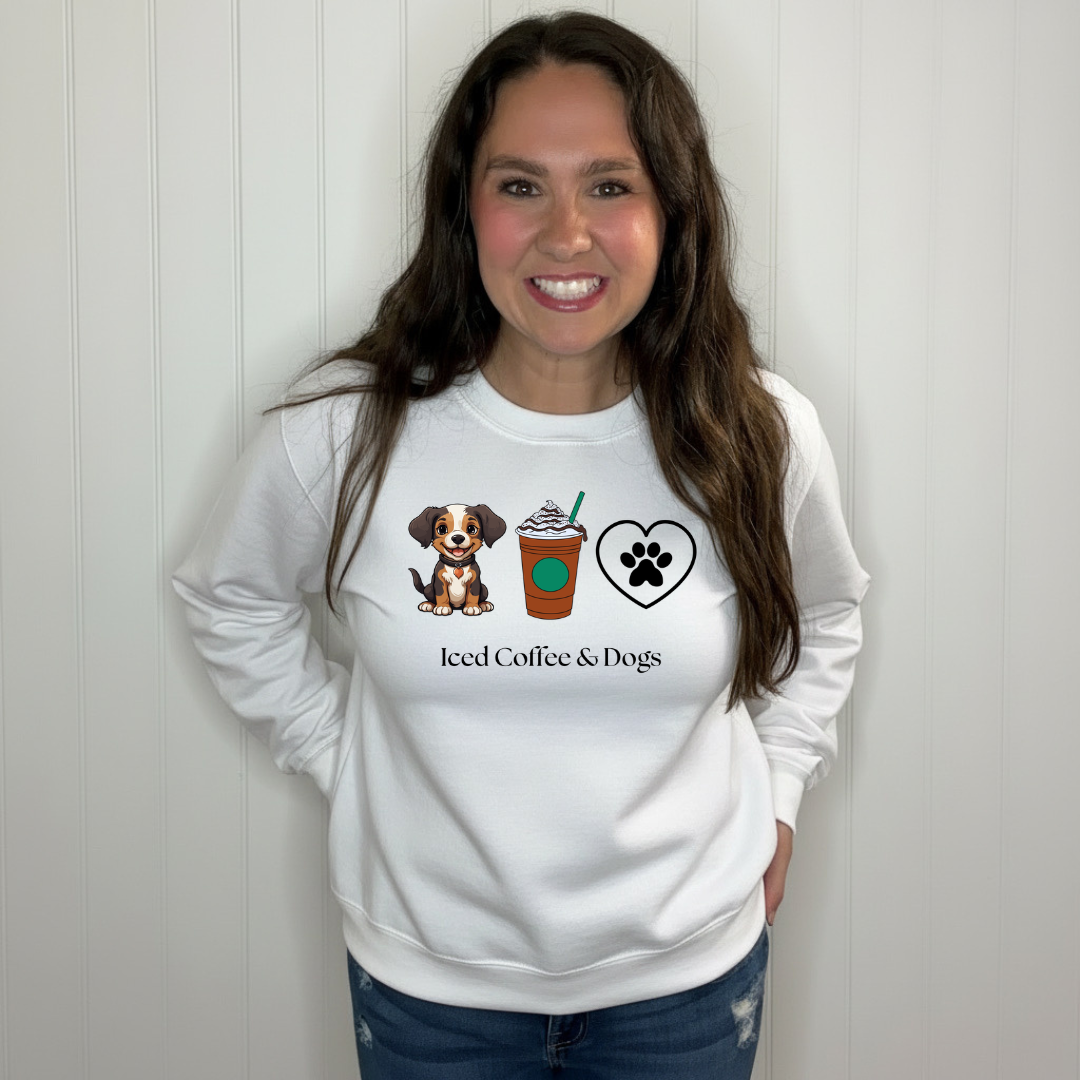 Introducing your new favorite companion - the Iced Coffee & Dogs sweatshirt or t-shirt! Stay cozy while sipping on your favorite beverage and cuddling with your furry friend. Perfect for any coffee and dog lover, this trendy piece will surely become a staple in your wardrobe.