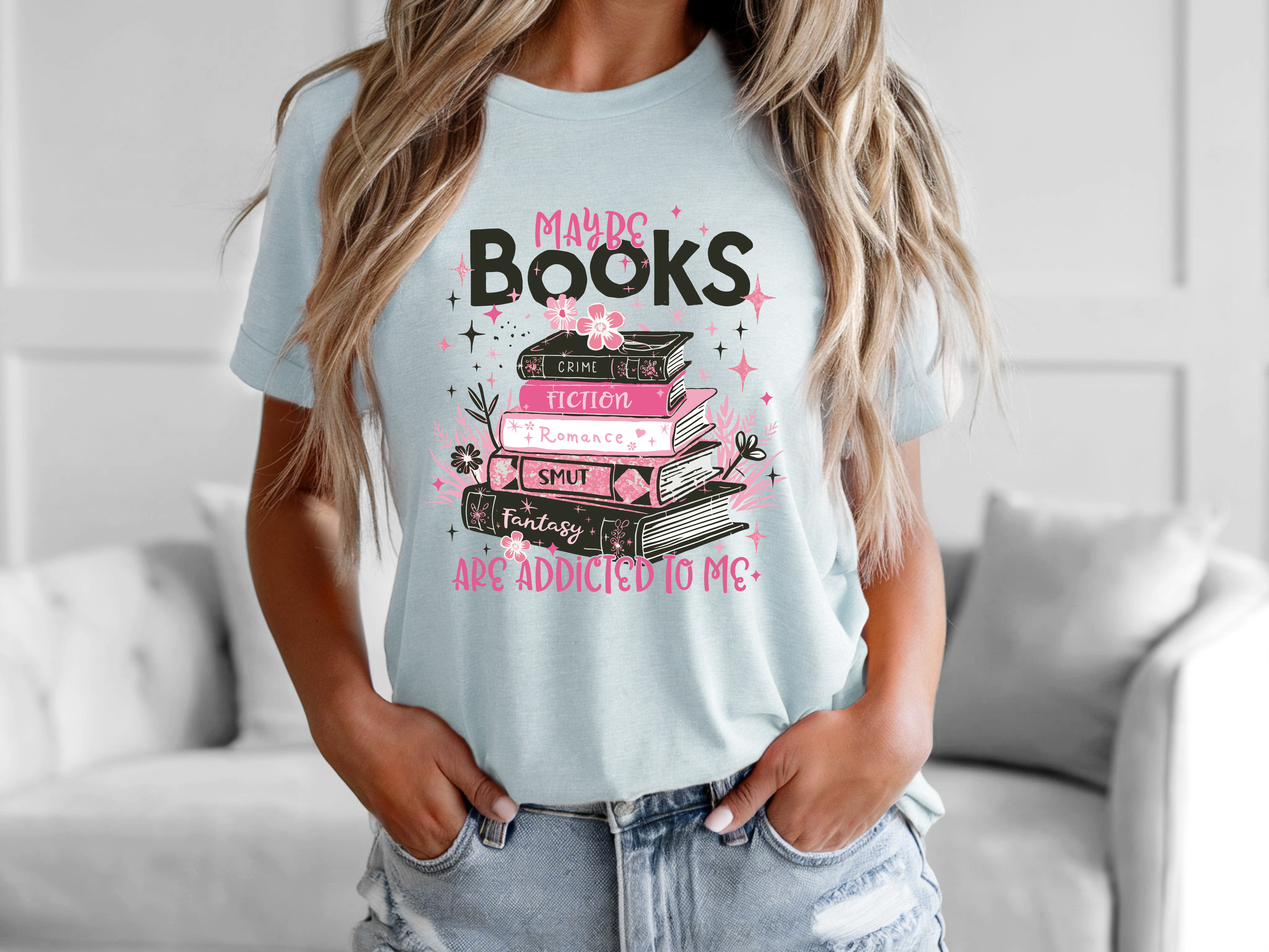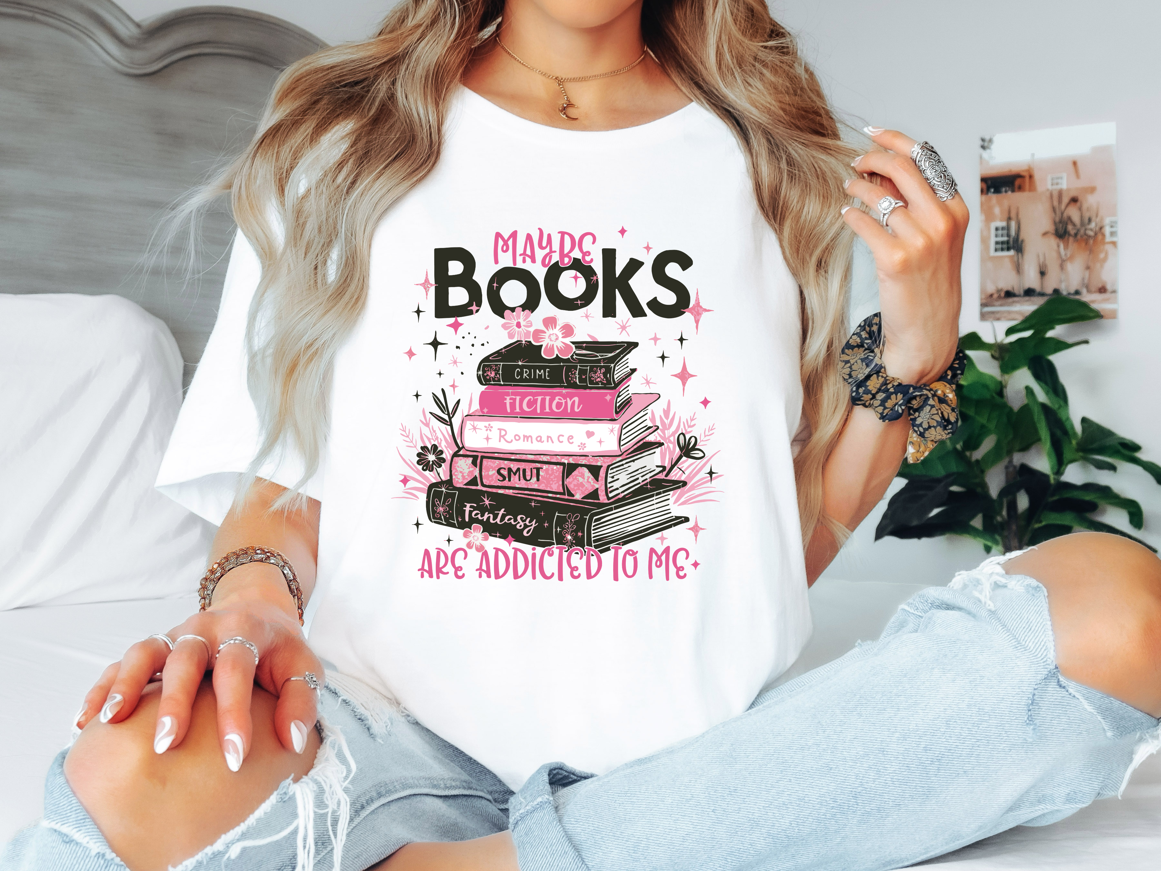 Maybe Books Are Addicted to Me Sweatshirt | Tee Flip the script with this witty sweatshirt that playfully flips the narrative on book addiction. Whether you're a serial reader who can't put stories down or someone who collects books faster than you can read them, this piece speaks your language with humor and charm. Soft, wearable, and perfect for declaring your literary obsession with a smile—because let's face it, the books might be just as hooked on you.
