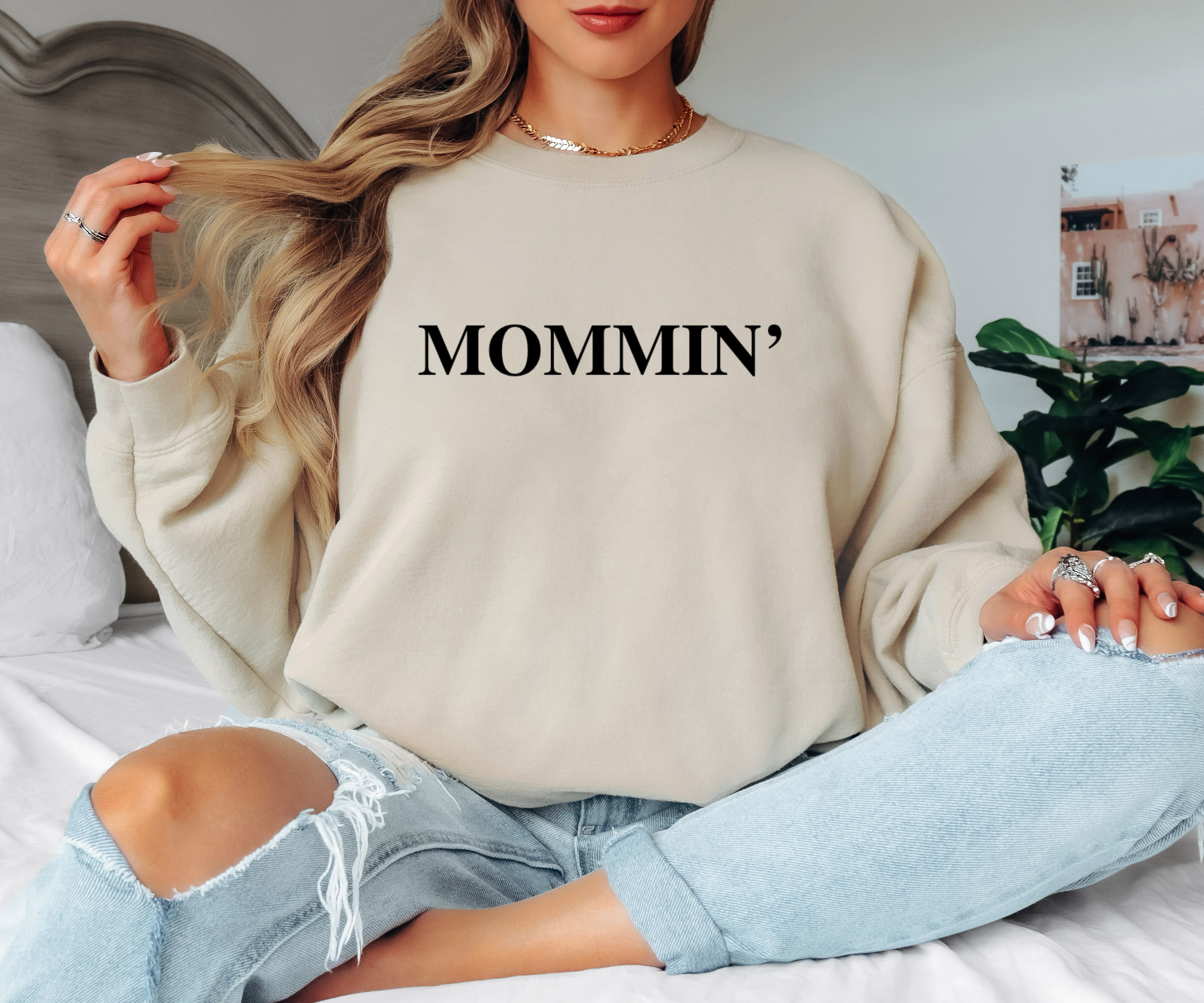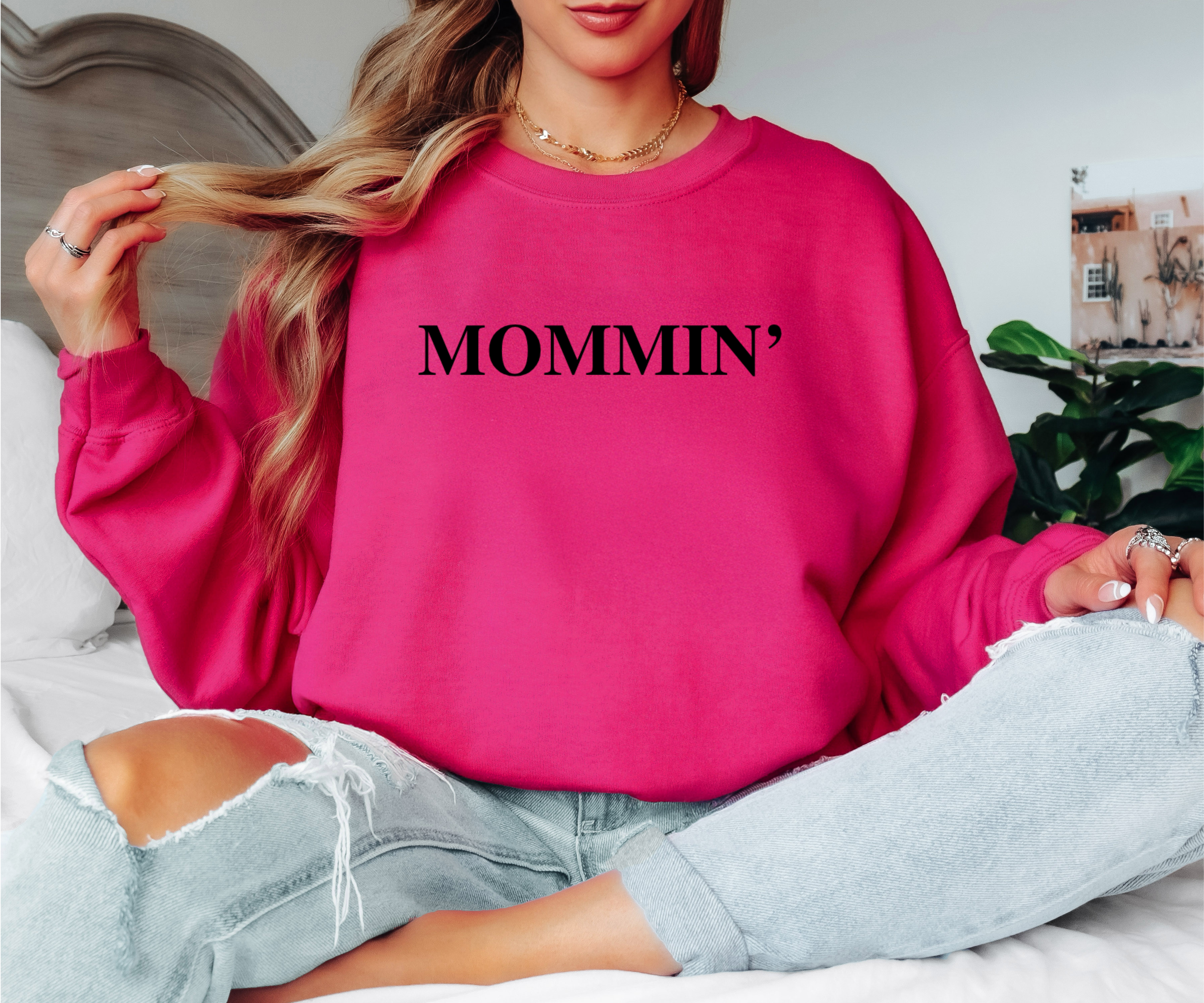 Stay cozy and stylish with the Mommin Sweatshirt, perfect for multitasking moms who love comfort with a touch of fun. Made from soft fabric, it keeps you warm during busy days while adding a playful vibe to your everyday look. Whether you're chasing little ones or relaxing with coffee, this sweatshirt is your new go-to for effortless mom-chic.
