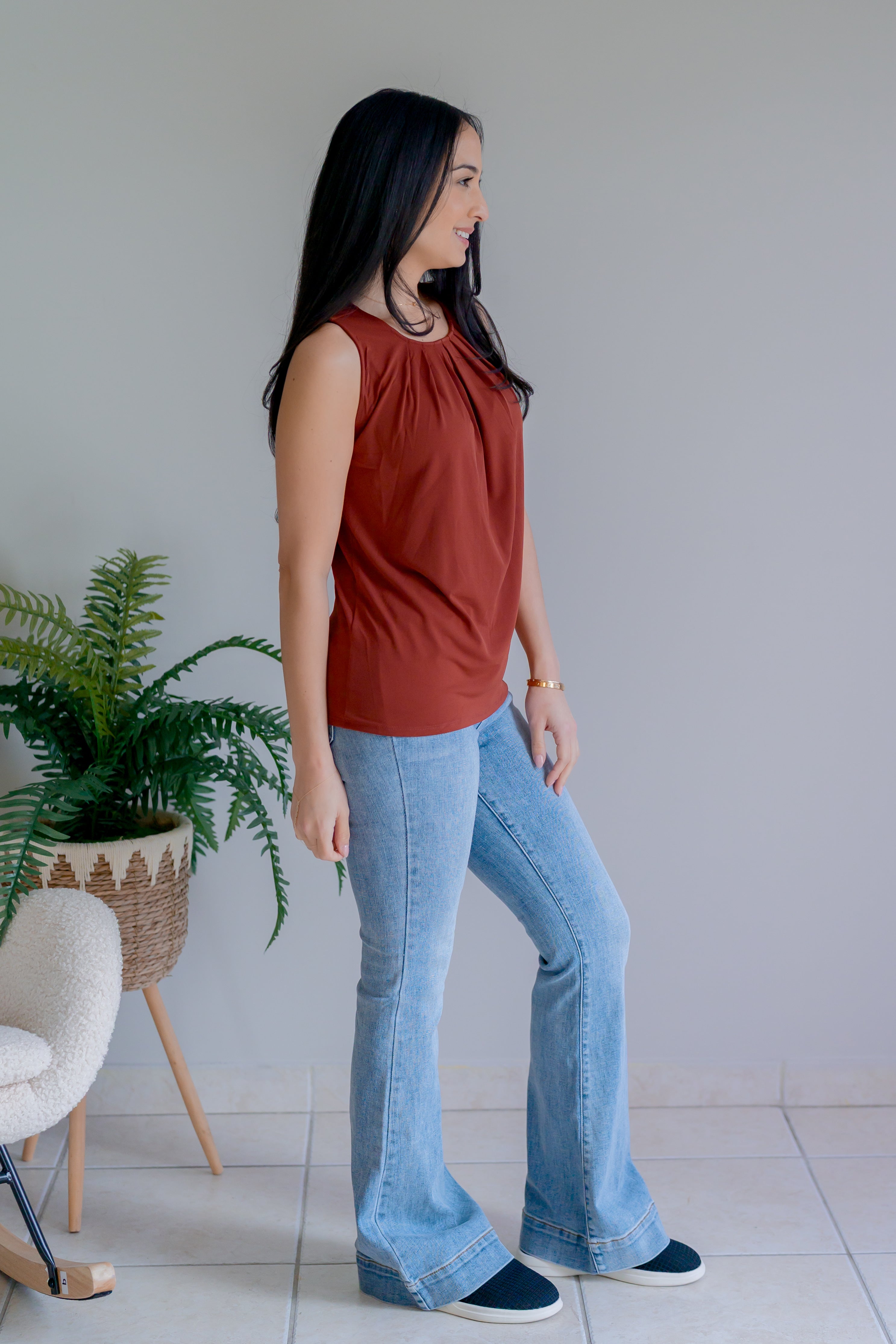 Meet your new favorite layering piece. This rust tank combines effortless elegance with playful charm, featuring a sophisticated earthy tone that pairs with everything. Wear it solo for understated style or layer it for added dimension. The perfect balance of versatility.