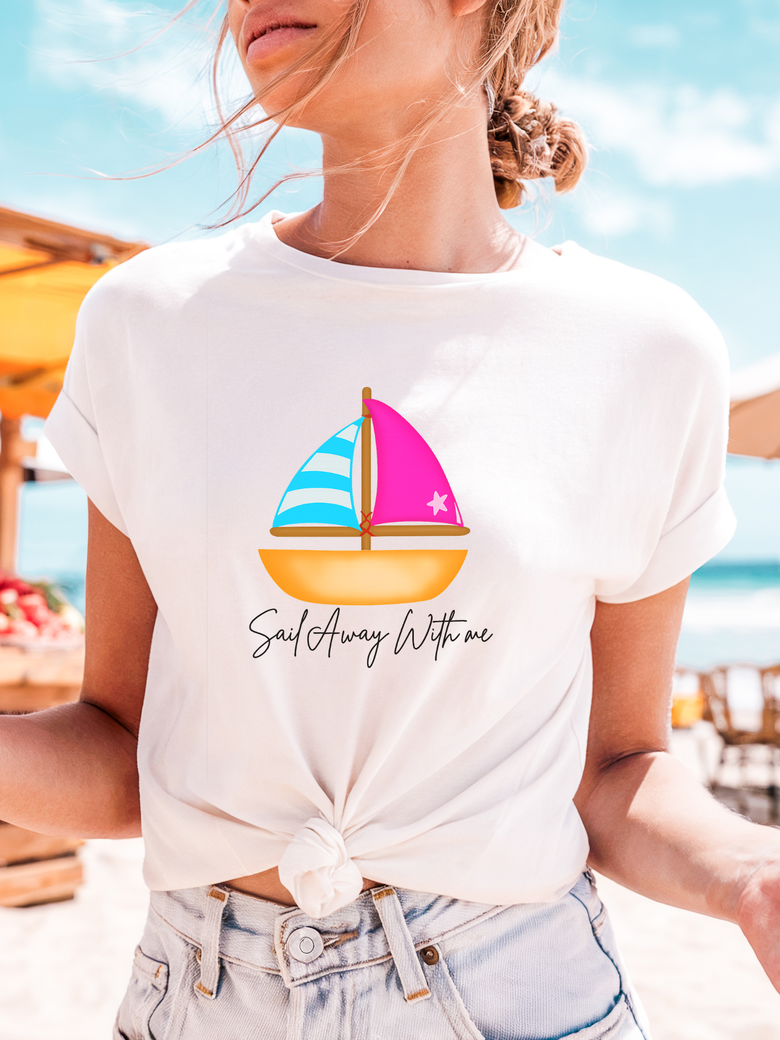Ahoy, matey! Set sail in style with our Sail Away With Me T-shirt! Made with soft, comfortable fabric, this shirt will have you feeling cool and relaxed as you embark on your next adventure. With a playful design and quirky phrase, you'll be sure to catch some attention. Don't miss the boat, grab your Sail Away With Me Tshirt today!