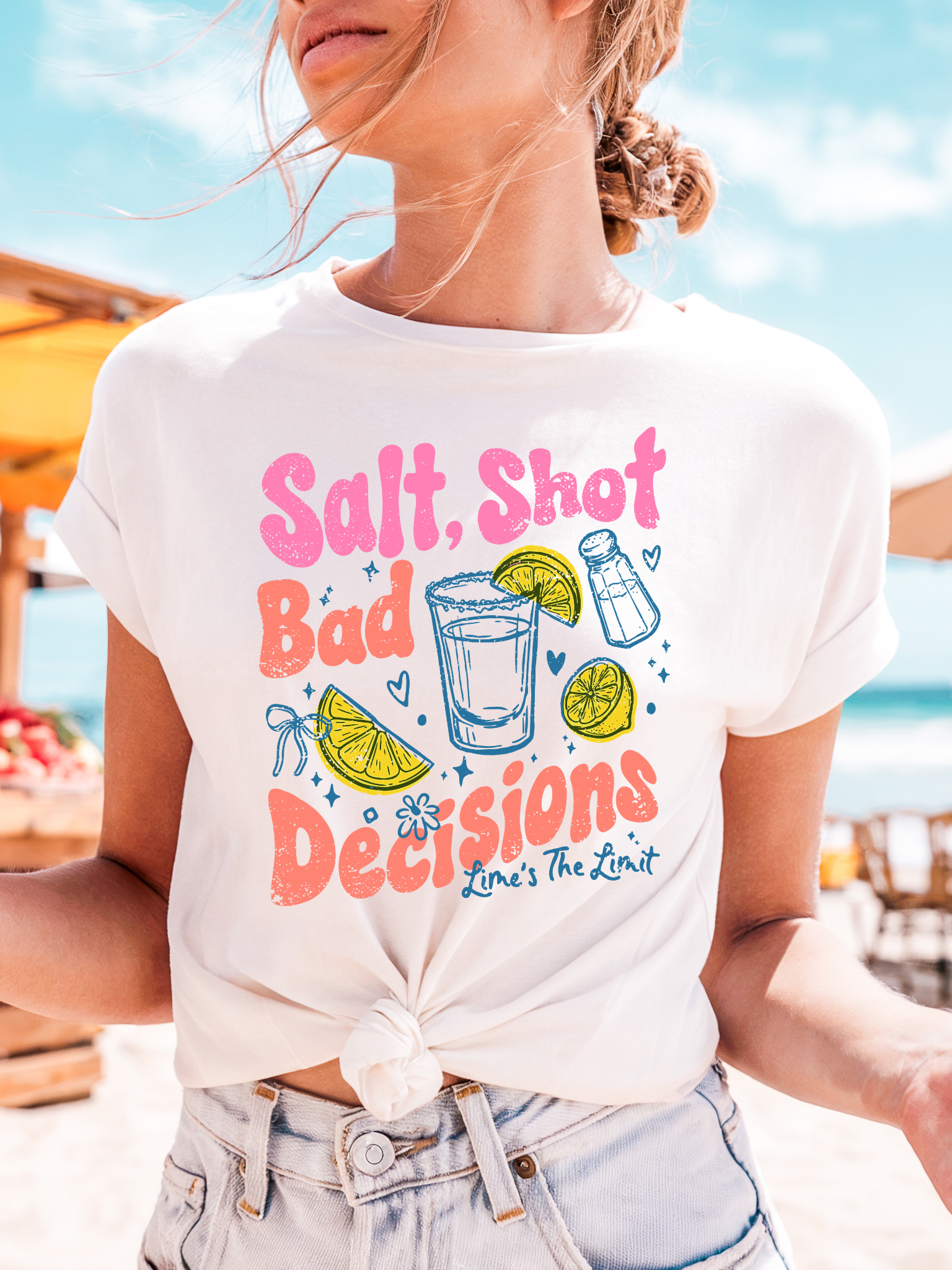 This bold, playful graphic brings the ultimate girls’ trip energy with bright citrus details, salty vibes, and just the right amount of chaos. Whether you’re headed to the beach, a bachelorette weekend, or just pretending it’s vacation season, this tee says it all.