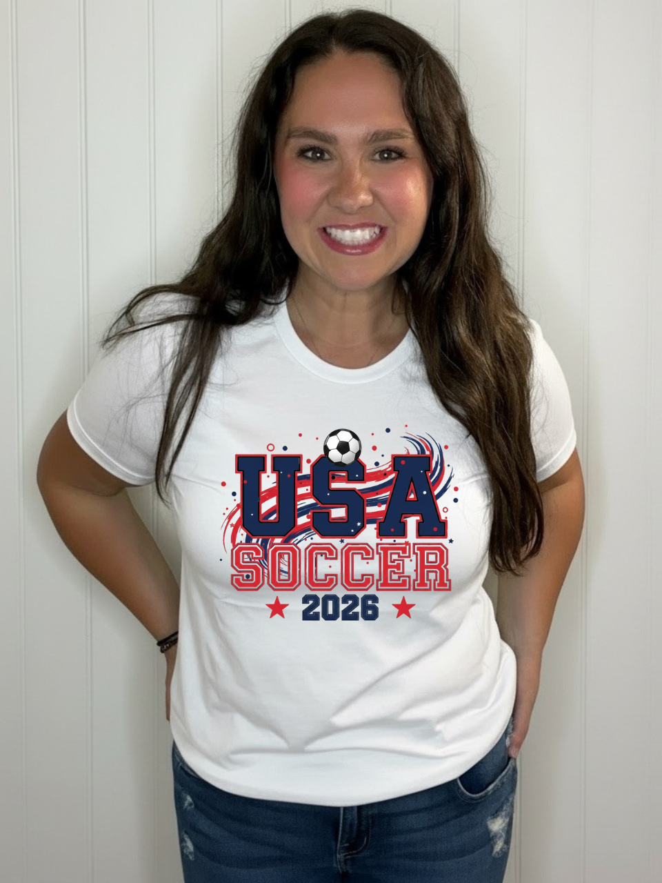 Dominate the pitch and the streets in this bold USA Soccer 2026 Tee. Crafted for fans who live and breathe the beautiful game, this tee combines patriotic pride with athletic edge. Perfect for match day, training sessions, or showing your colors year-round. Made from premium comfort fabric that moves with you, whether you're cheering from the stands or kicking it with friends. Rep Team USA with confidence and style.